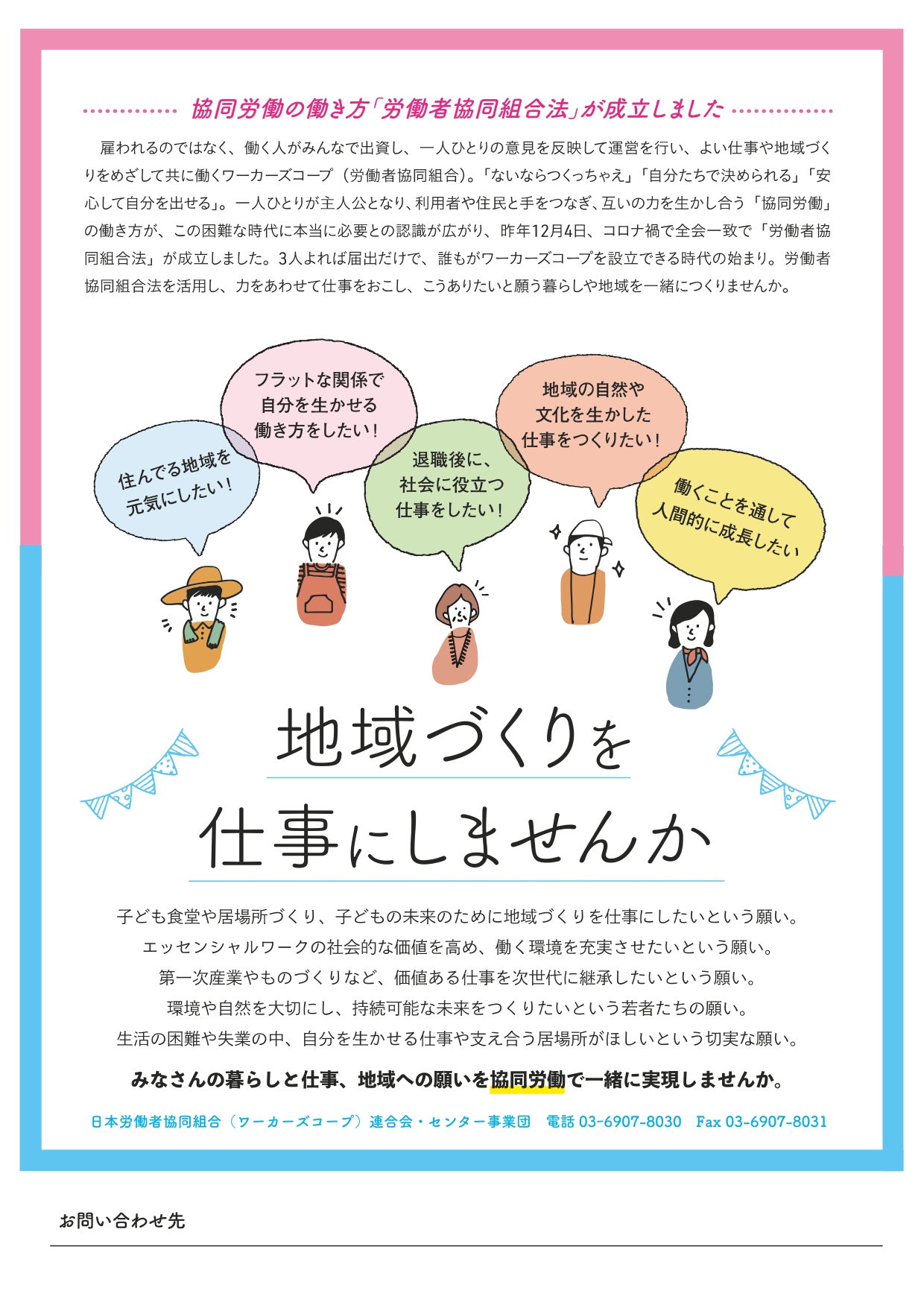 ■労働者協同組合法活用セミナー 日時:2025年8月28日(木) 14:00~16:00